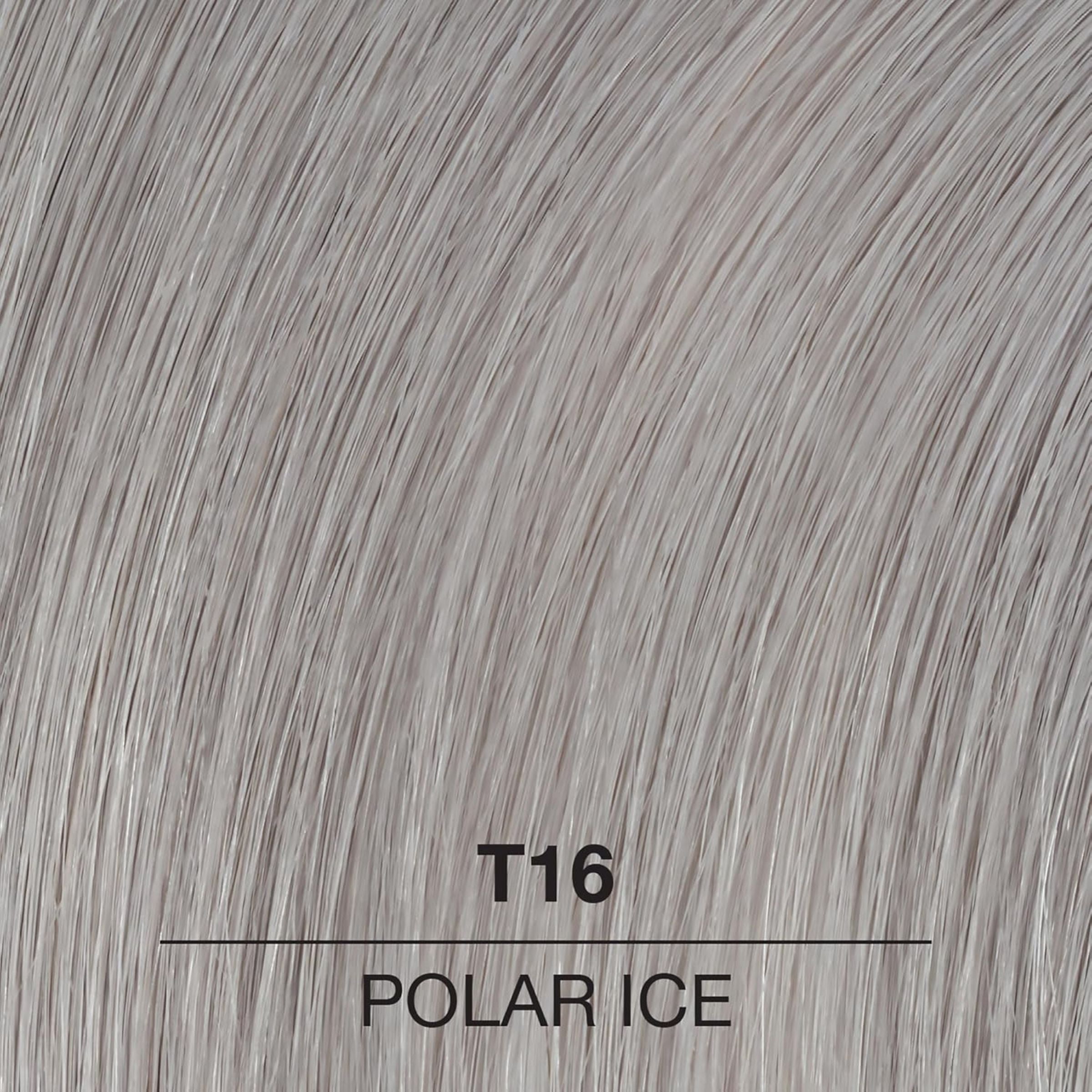 A clean and very light, icy blonde. The Wella Color Charm T16 Polar Ice Permanent Crème Toner is a easy to use and works to tone down brassy yellow tones, giving you a salon quality blonde from home.